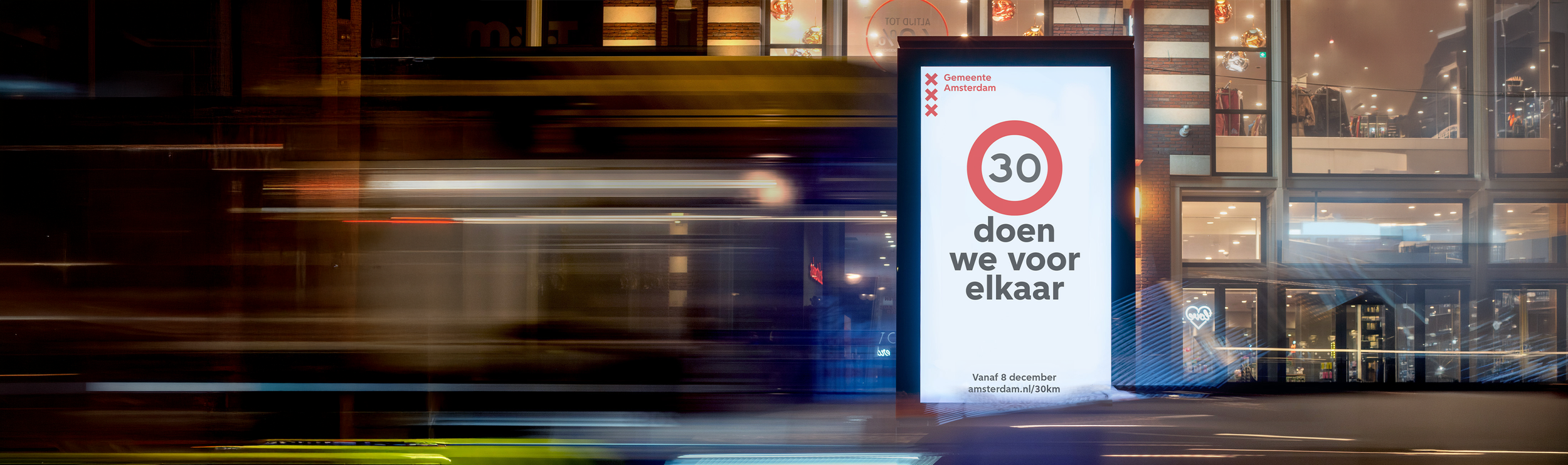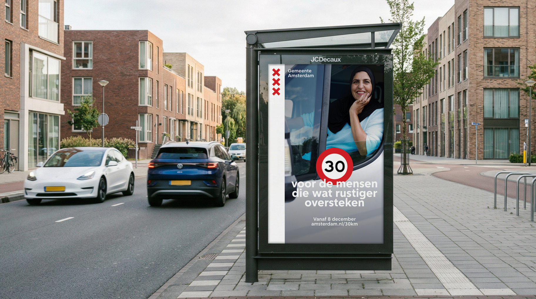 In 2023 ging bijna de hele stad naar 30 kilometer per uur. De uitdaging die de Gemeente Amsterdam bij ons legde: Hoe creëer je aandacht én draagvlak, terwijl heel veel Amsterdammers dit als beperking zien?