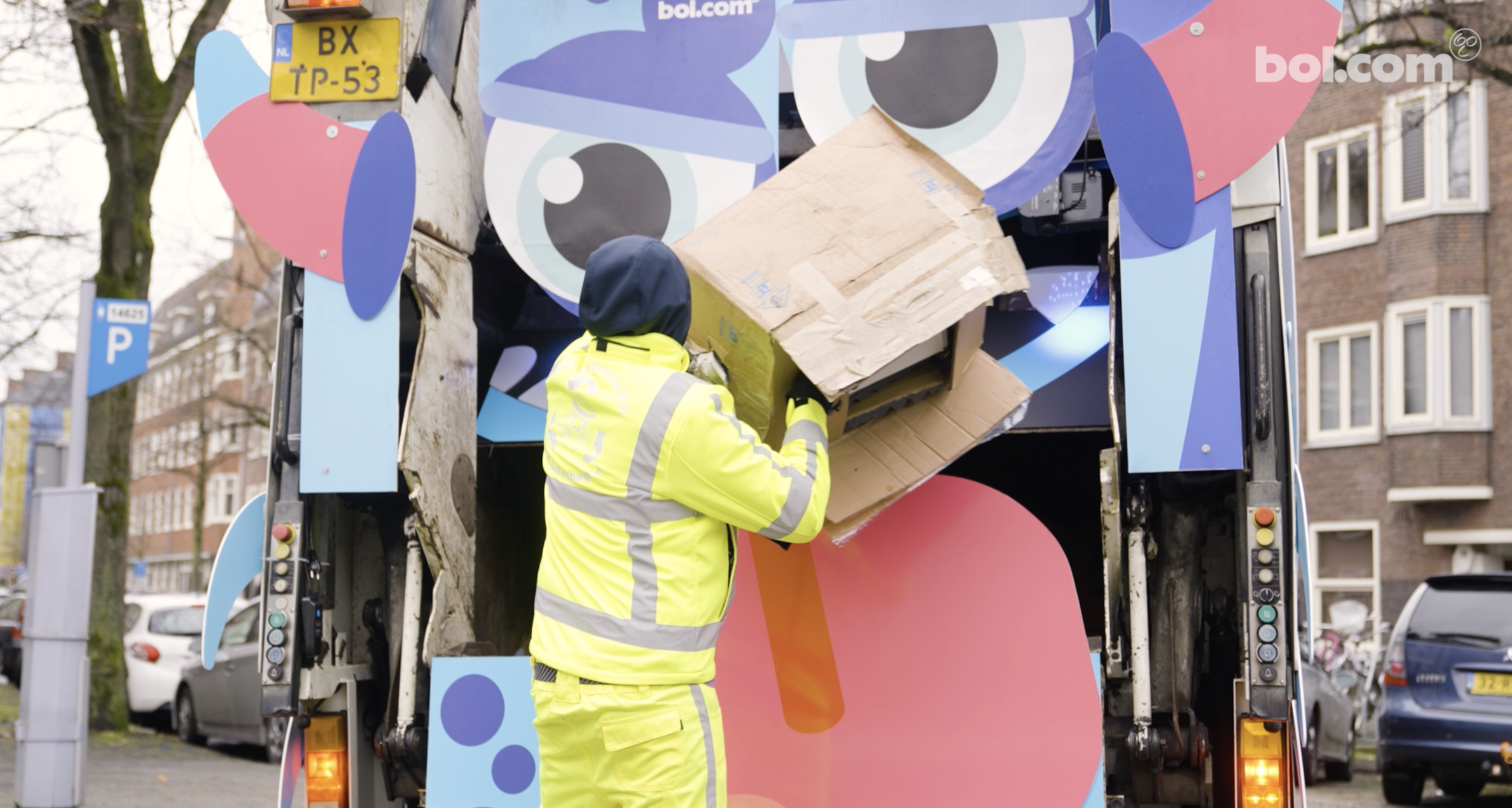 Tijdens de feestdagen groeit het altijd uit tot een zichtbare ergernis: zwerfkarton. De straten puilen uit en papierbakken lopen over. Vooral omdat het enorme volumes zijn waar mensen niet goed raad mee weten. bol vroeg ons om, in samenwerking met Gemeente Amsterdam, mee te denken over een mogelijke oplossing.