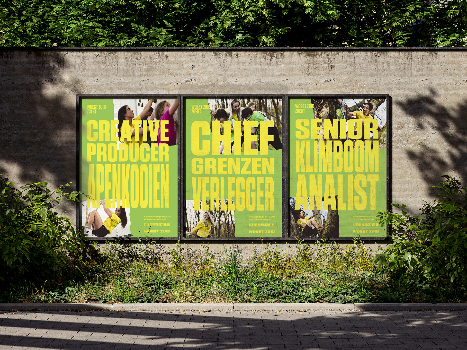 We positioneerden Woest Zuid als dé ideale plek om je studententijd nog iets te verlengen met een dynamische, actieve, gezellige baan. Dit deden we door ingewikkelde functietitels op de hak te nemen. En in het oog springende vacatures te maken voor rollen als Senior Klimboom Analist en Creative Producer Apenkooien.